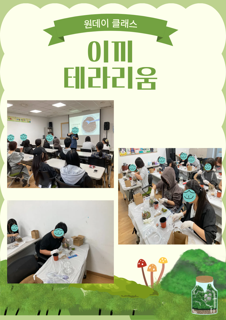 목록 [광주시 꿈드림] 이끼 테라리움 원데이클래스 작성자 최고관리자 작성일 25-11-06 11:10 | 조회 75 | 댓글 0 본문 광주시 농업기술센터와 연계하여 이끼 테라리움 원데이 클래스가 열렸습니다!(ノ◕ヮ◕)ノ*:・゚✧ 이전글다음글 댓글목록 0 등록된 댓글이 없습니다. 목록